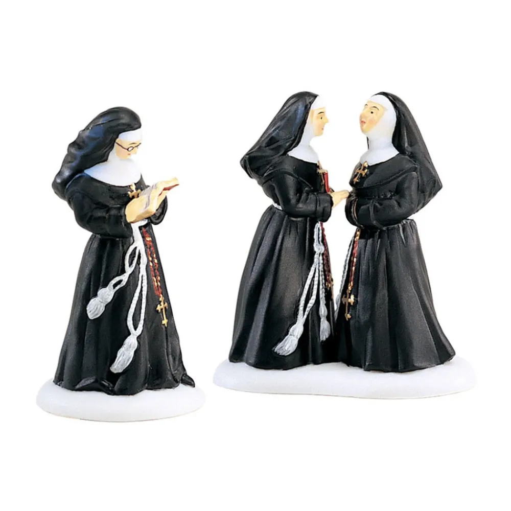 Sisters Of The Abbey Set Of 2, Porcelain Accessory, Set Of 2. These Detailed Figurines Will Add Detail To Any Alpine Village Church