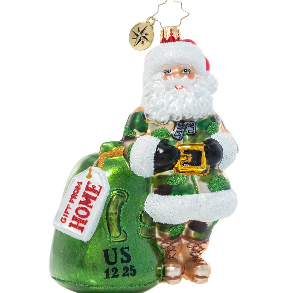 Camo Christmas Santa, Santa Has Returned From Serving His Country, And Ready To Serve The World On Christmas Eve. He’s Repurposed His Military Duffel To Haul Around His Gifting Loot! 1021299, Radko