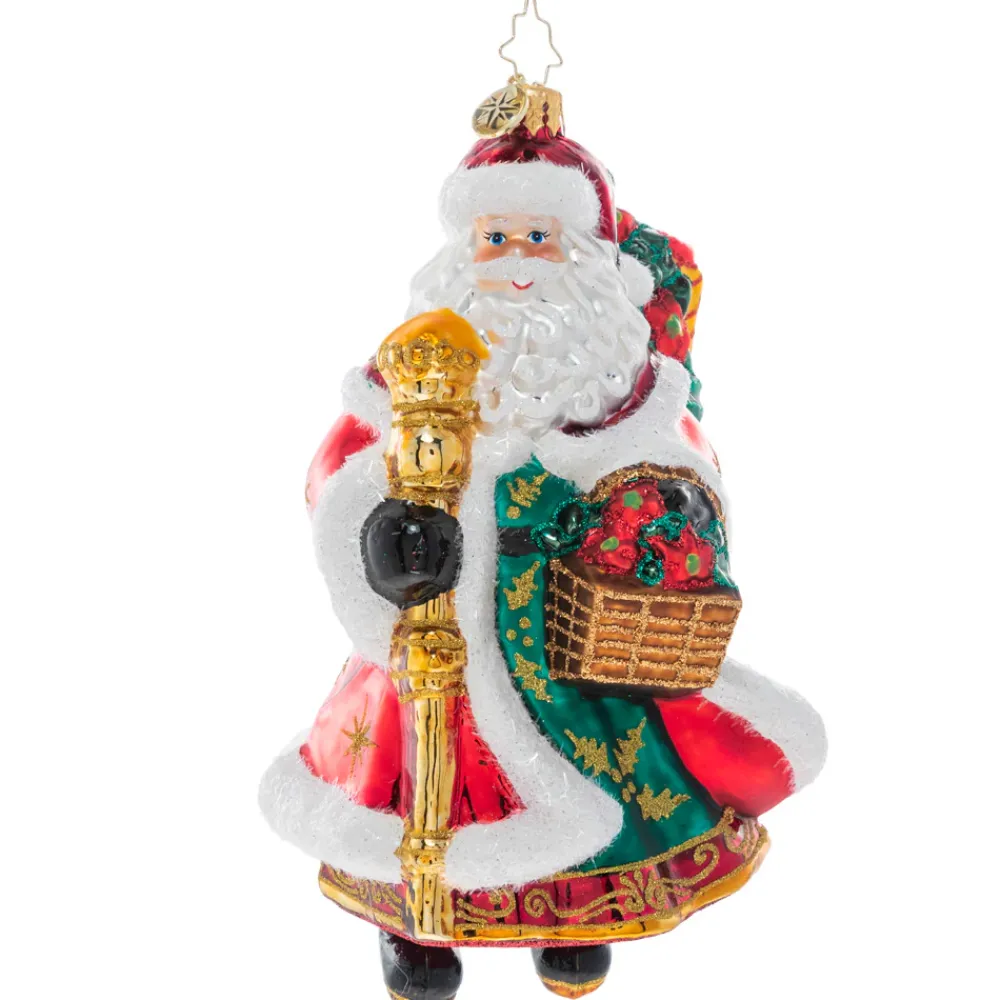 Festive Florals Santa, With A Gift Basket Of Christmas Poinsettias And Decorated Robes To Match, Santa Is Heading To A Fancy Holiday Party. His Golden Staff Will Help Light The Way Through The Snow. 1020963, Radko