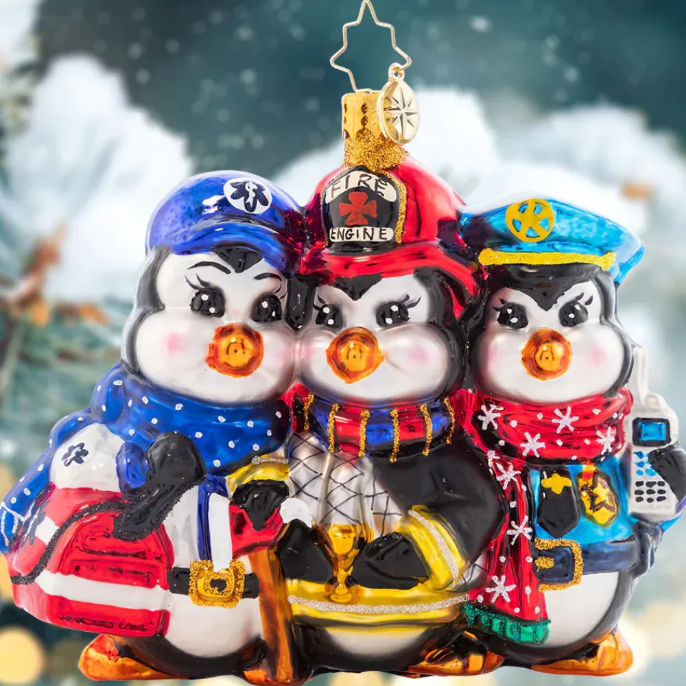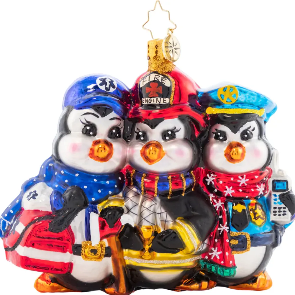 A Service Trio That’Ll Handle Any Winter Emergency With The Most Dedicated Urgency. No Matter The Bad Weather, This Penguin Flock Will Always Stick Together. A Percentage Of The Sales From This Ornament Will Benefit A Charity That Supports First Responders.