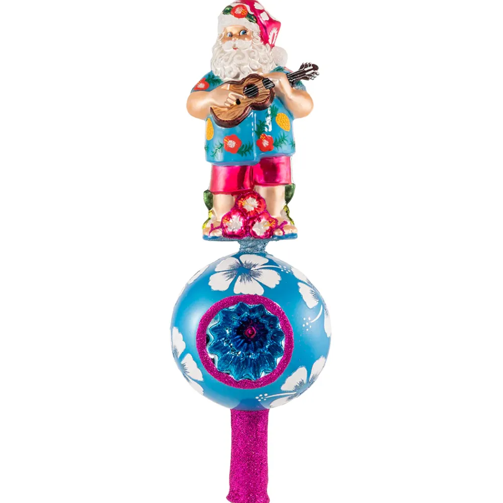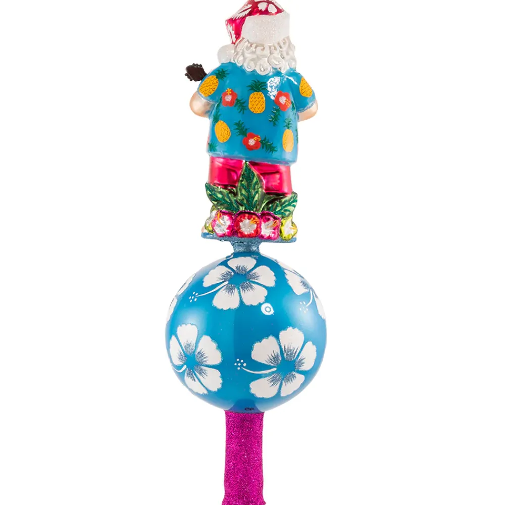 Island Time Finial Topper, Santa Is Hangin’ Loose! Ditching His Signature Fur Suit For A Hawaiian Shirt, He Is Bringing Some Island Rhythm And Major Aloha Spirit To The Top Of Your Tree! 1020821, Christopher Radko