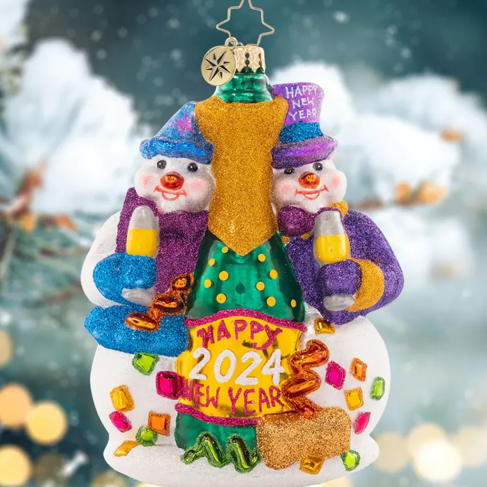 Two Festive Snow-Friends Are Ringing In The New Year With A Big Bottle Of Bubbly! Commemorate Another Wonderful Year With This Cute, Cozy Ornament. Dated 2024