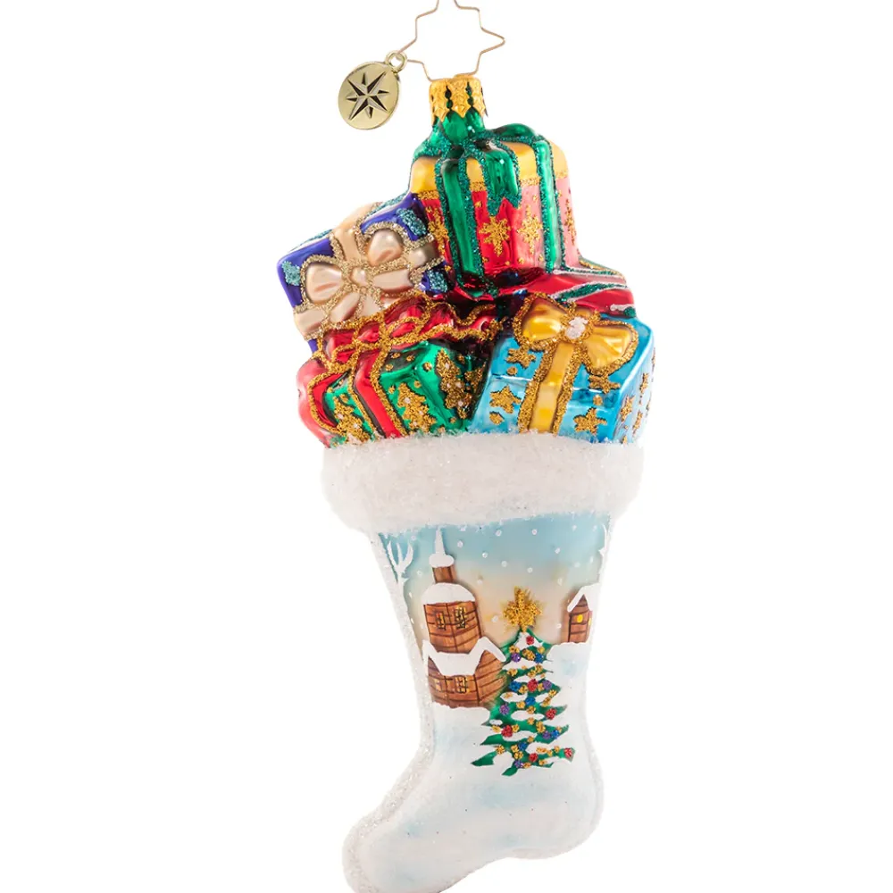 Snow-Dusted Serenity, Santa Went Overboard This Year! Showcasing A Snowy Scene, This Special Stocking Is Chock-Full Of Surprises. 1020801, Christopher Radko