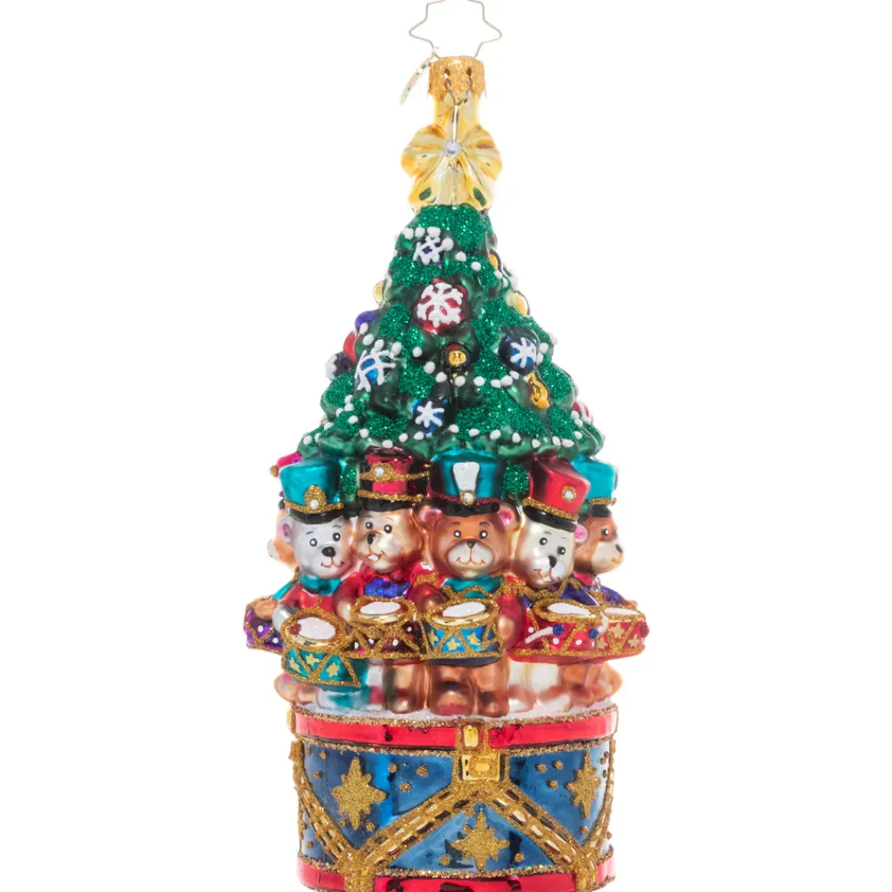 The Drumming Division, The Final Ornament In Our Ornament Of The Month Collection, This Piece Celebrates The 12Th Day Of Christmas With A Traditional Christmas Tree Surrounded By A Band Of Bears Who Look Ready For A Holiday Drumline! 1021255, Radko