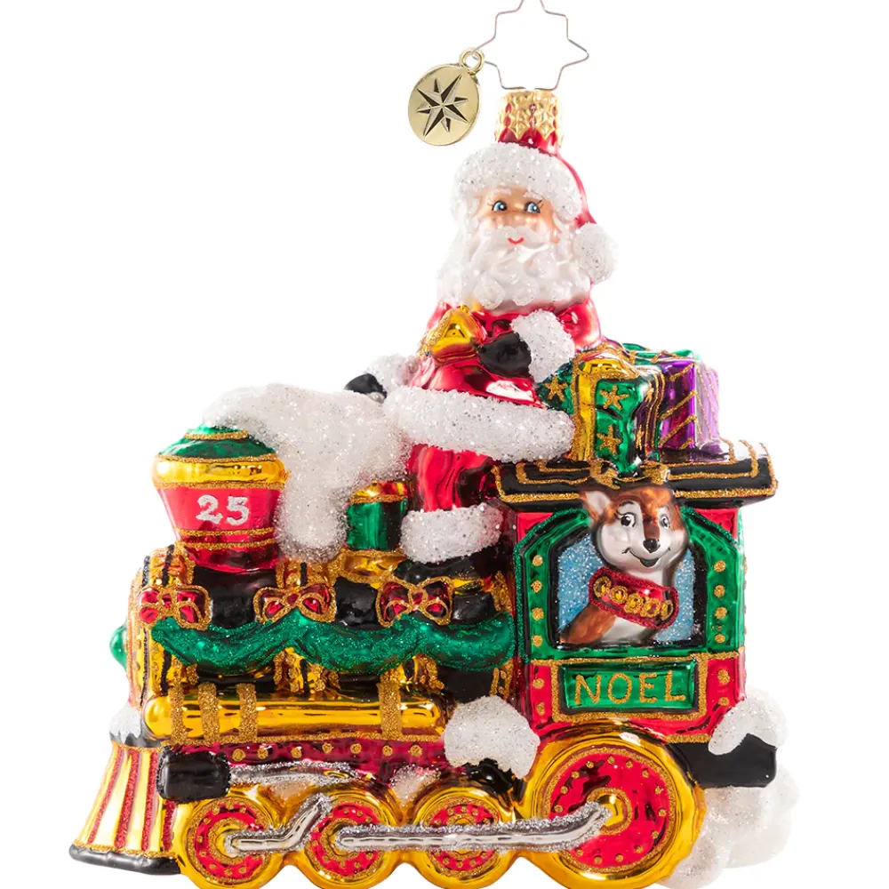 The Fast Track To Christmas!, With Dasher Manning The Controls, Santa Hitches A Ride On The Holiday Express. They Cannot Wait For Christmas And Are Chugging Along Full Steam Ahead! 1020698, Christopher Radko