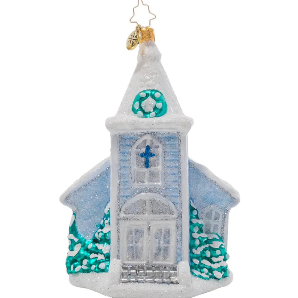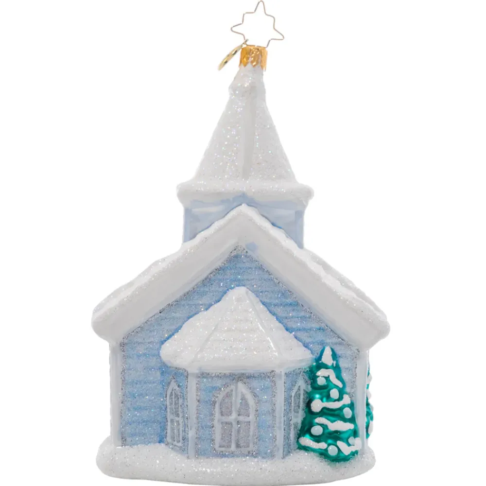 White Christmas Chapel, Nestled In New-Fallen Snow, This Glistening Chapel Is What White Christmas Dreams Are Made Of! Hang It From Your Tree To Remind You Of The Warmth That Comes From Gathering Together To Celebrate The Reason For The Season. 1021021, Radko