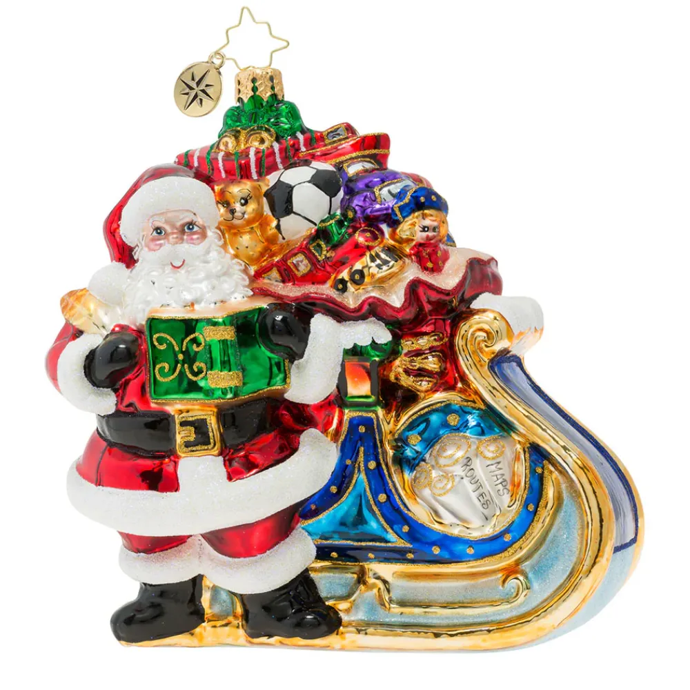 Delivery On Its Way!, Is Part Of The 2019 Santa Claus Collection. This Beautiful Ornament Features Jolly Old Saint Nicholas Standing Alongside His Regal Purple And Gold Sleigh. The Sleigh Is Filled To The Brim With Toys Waiting To Be Delivered While The Cheerful Santa Double Checks His Nice And Naughty List.