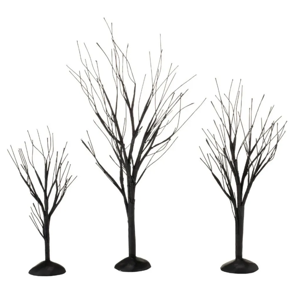 Black Bare Branch Trees, St/3,Use Department 56 Cross Product Accessories To Enhance Your Halloween Or Fall Village Display. Black Bare Branch Trees, Set Of 3. 9.75″, 7.75″, 5.75″ 4033851, Halloween Village