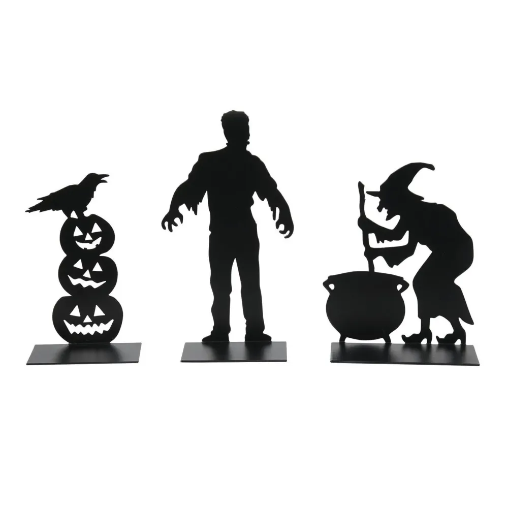 What Do The Monster, The Witch And The Pile Of Pumpkins Have In Common? They Are All Matte Black Metal Silhouettes Ready To Place On The Front Lawn Of Any Of Your Halloween Village Houses. They Are The Spooky Silhouettes.
