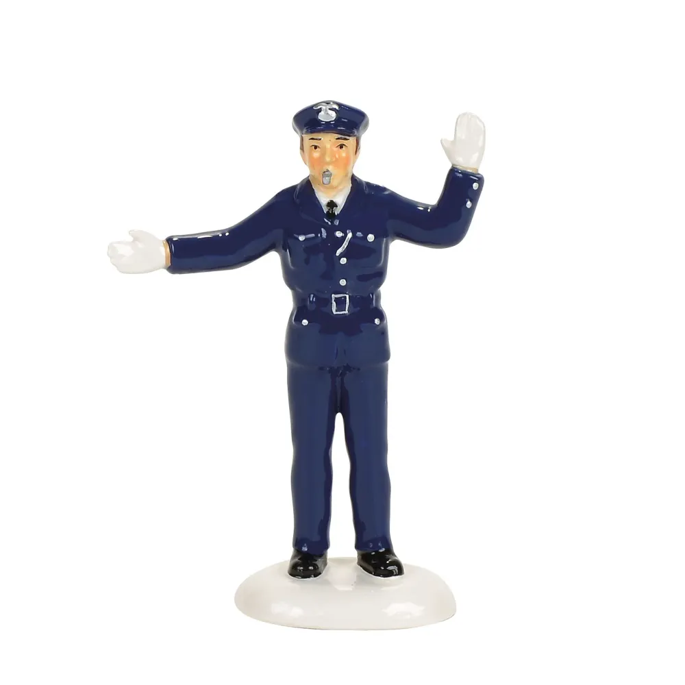 Traffic Cop, Dressed In His Finest Blue Uniform, The Traffic Cop Directs All The Cars In Snow Village And Maintains Law And Order In Your Village! This Is A Great Gift For The Law Enforcement Man In Your Family !