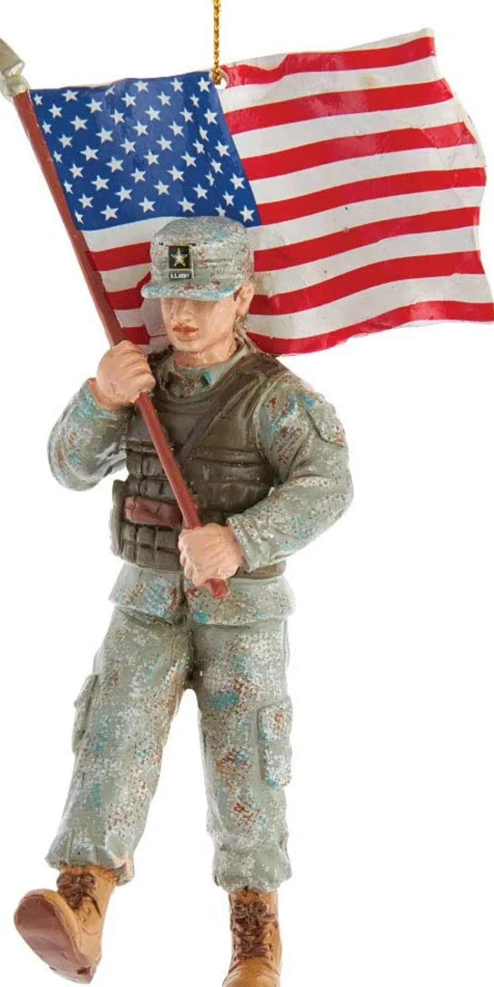 U.S. Army® Soldier Ornament Is A Wonderful Way To Pay Tribute To The Soldier In Your Family. This Ornament Features A U.S. Army® Soldier In Full Uniform Carrying The American Flag.