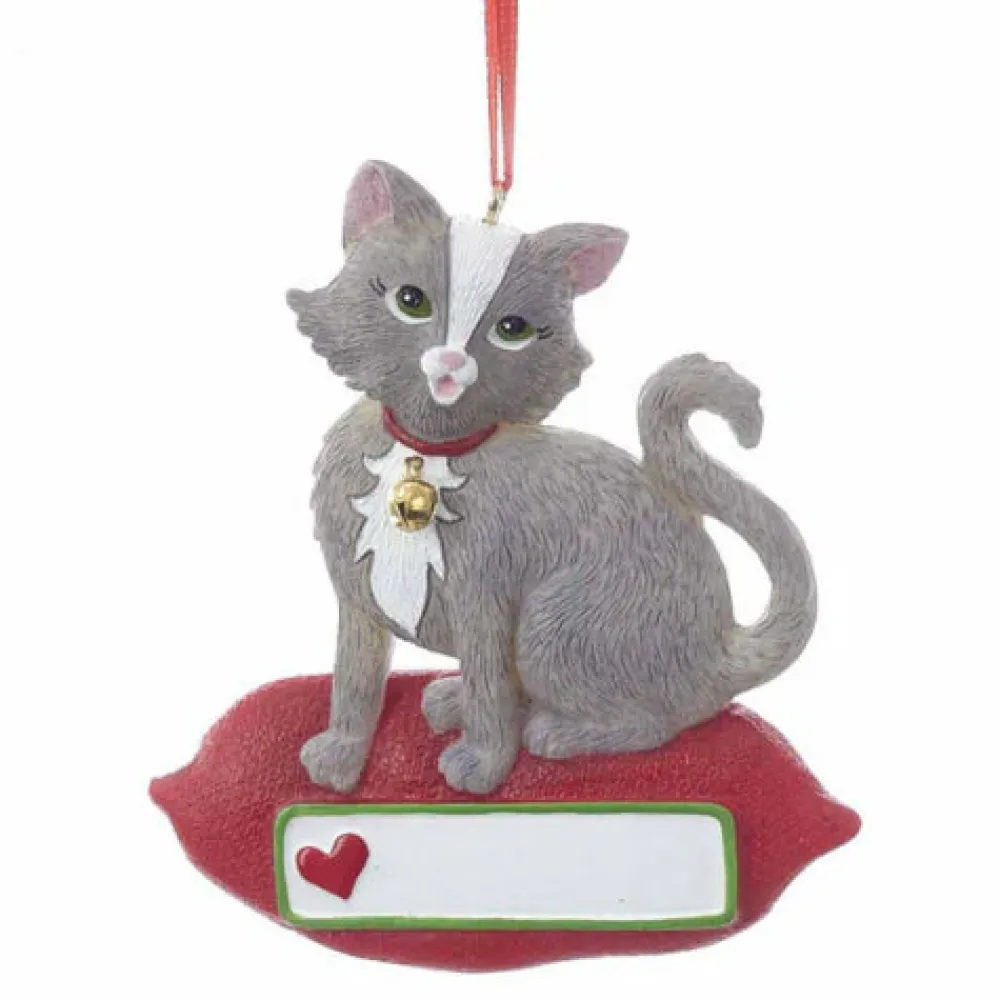 Cat On Pillow Ornament, A1840, Kurt Adler For Personalization With A Sharpie Pen Or Marker Resin