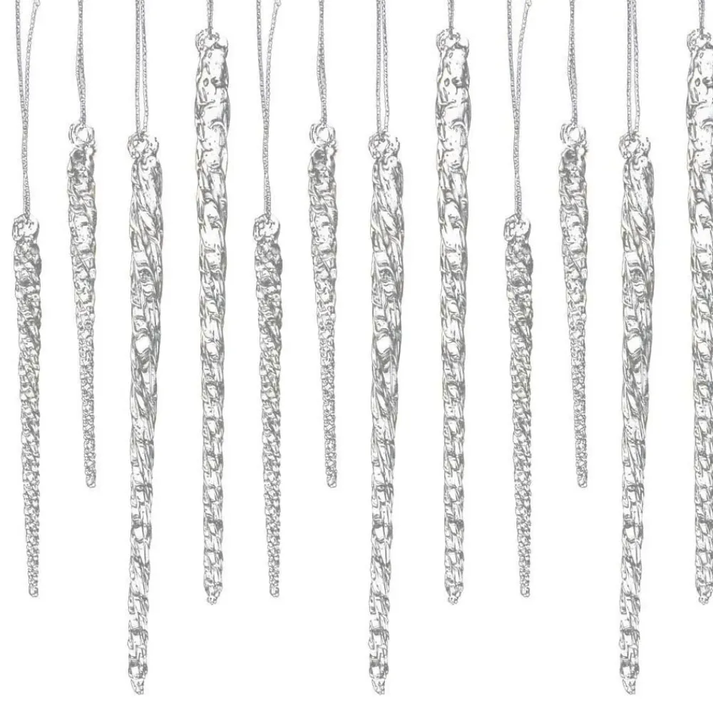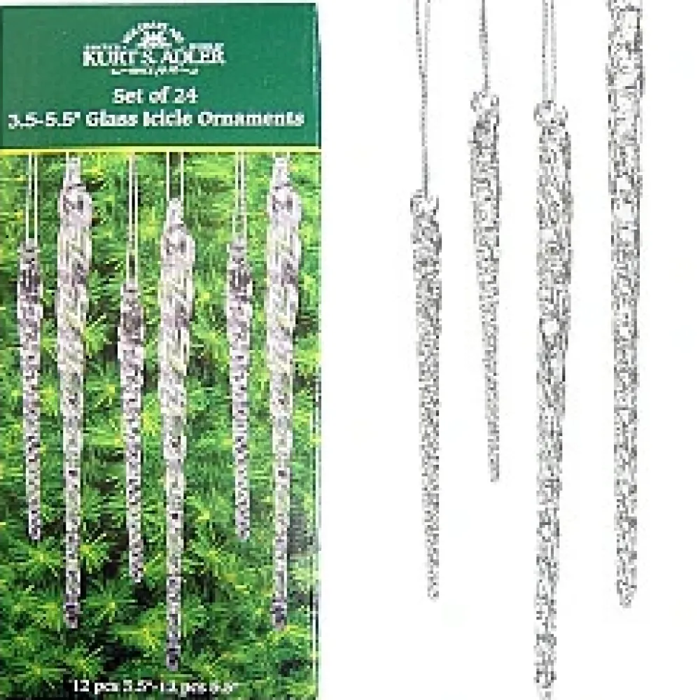 Kurt S Adler Glass Icicle Ornaments Clear Twist Set Of 24, W3730^ Glass
