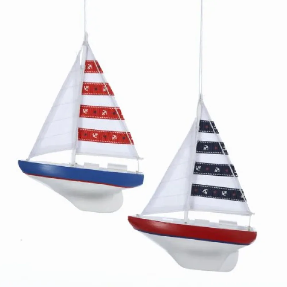 Wooden Yacht With Sails Ornament, C5371