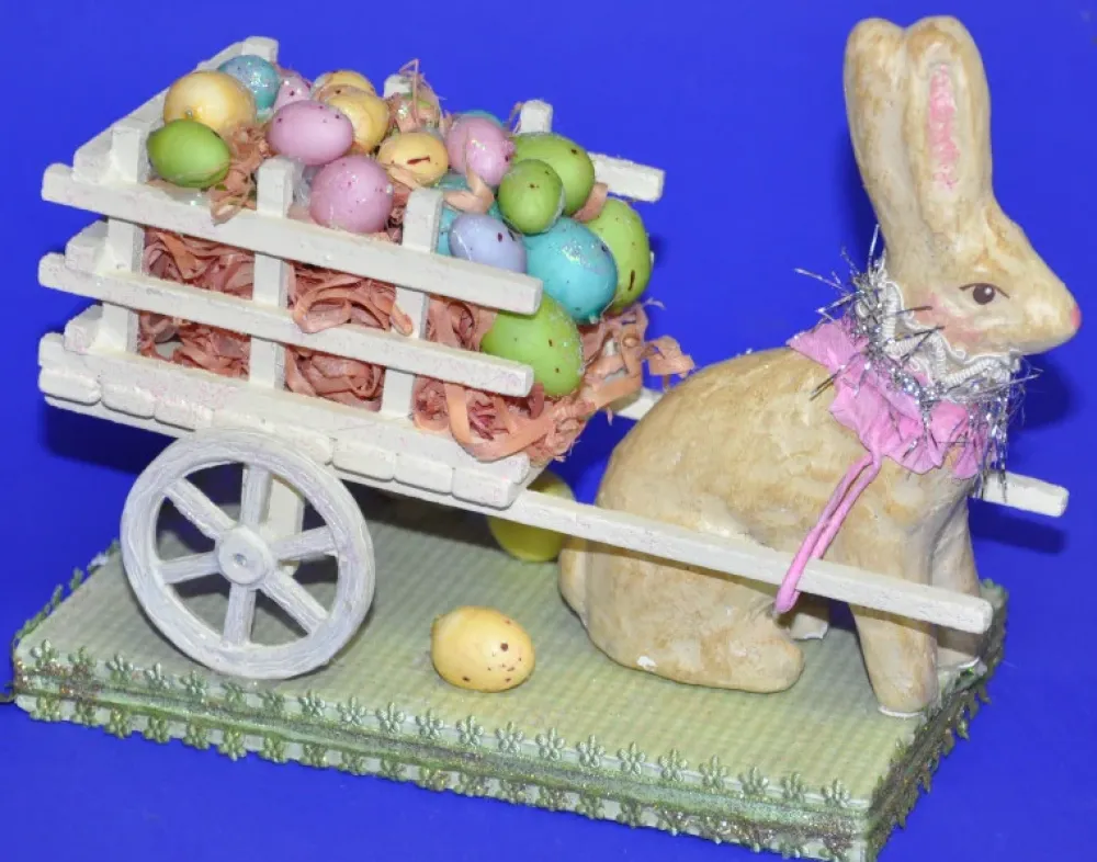 Bunny Pulling A Cart Of Eggs, Last Chance For This Super Cute Easter Display Only A Few Left Size: 5″ X 7.5″