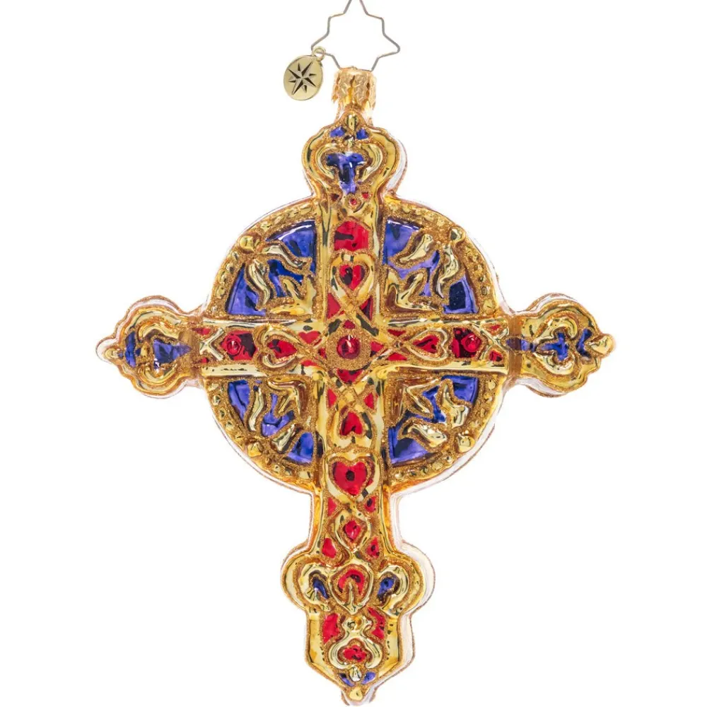 This Gleaming Golden Cross Features The Beautiful Scene Of Baby Jesus, Mary, And Joseph – A Piece That Celebrates The Beauty Of Christmas.
