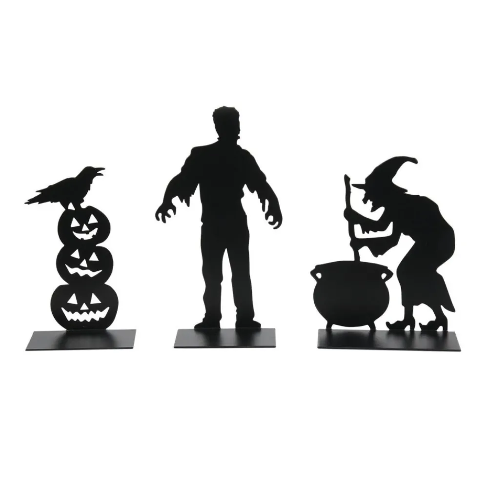 What Do The Monster, The Witch And The Pile Of Pumpkins Have In Common? They Are All Matte Black Metal Silhouettes Ready To Place On The Front Lawn Of Any Of Your Halloween Village Houses. They Are The Spooky Silhouettes.