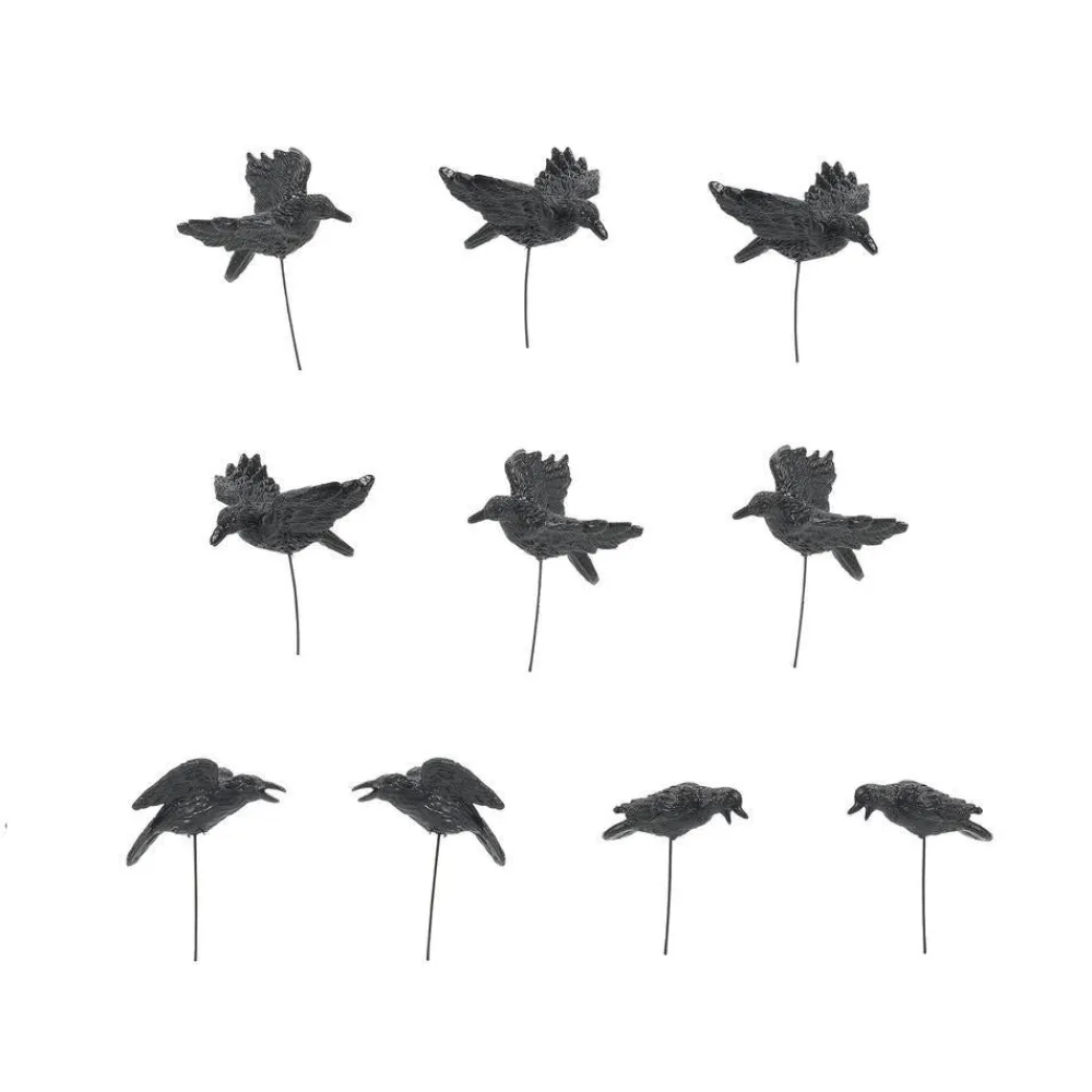 Set Of 10 Halloween Crows, Set Of 10 Crows. Each Bird Is Fixed On A Bendable Wire Making Them Easy To Position. 6010541, Halloween Accessories