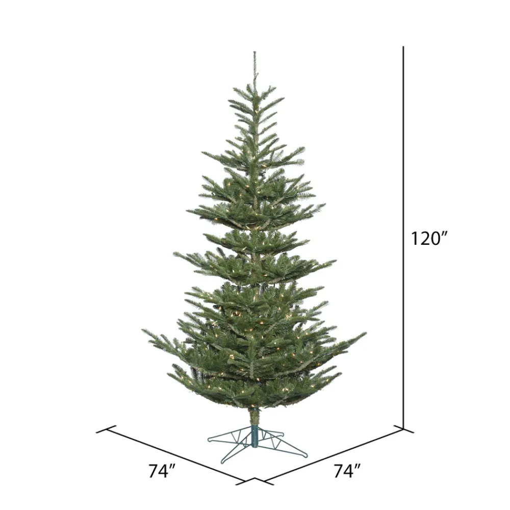 Vickerman 10′ X 74″ Alberta Spruce Artificial Christmas Tree, 1858 Pvc/Pe Molded Tips And 800 Warm White Dura-Lit Italian Style Led Lights. Incorporate This Beautiful Tree Into Your Space, It Comes Prelit With Warm White Dura-Lit Italian Led Mini Lights, Features A Blend Of Rich Green Pvc And Pe Molded Tips On Metal Hinged Branches, A Convenient On/Off Step Switch And Metal Tree Stand Is Included.